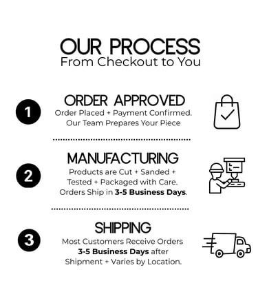 Each piece is crafted with care, cut precisely, hand-sanded to achieve a smooth finish, and tested. Each product takes 3 - 5 business days to manufacture.
